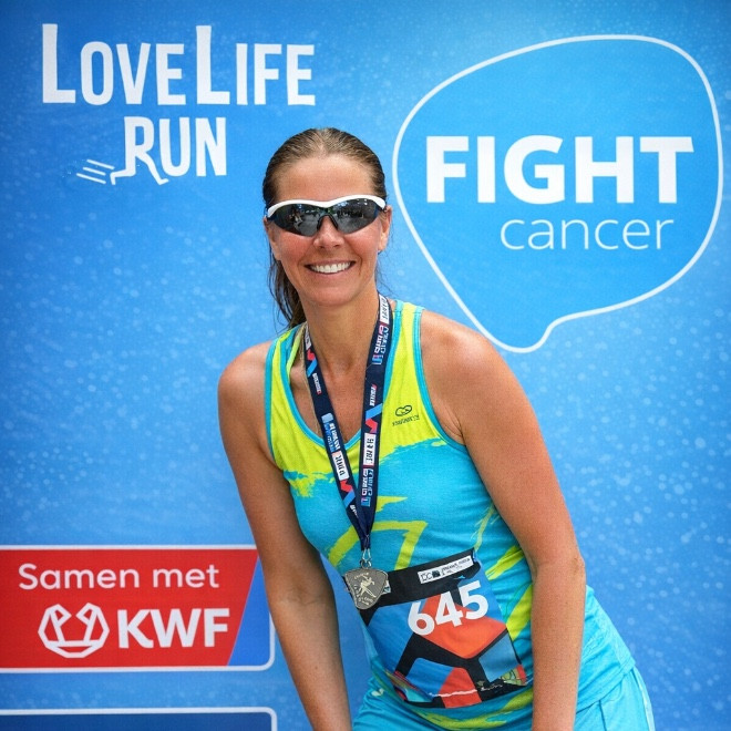 "LoveLife Run was een prachtig doel om naartoe te werken tijdens mijn behandeling, om zo fit mogelijk te worden en geld in te zamelen. Samen met familie, vrienden, collega’s, artsen en verpleegkundigen over de finish komen was voor mij heel emotioneel, en prachtig en speciaal!