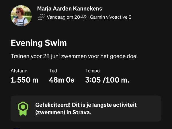 Marja, heel veel succes met de voorbereidingen en natuurlijk tijdens de zwemtocht veel succes én plezier. Je bent n kanjer!